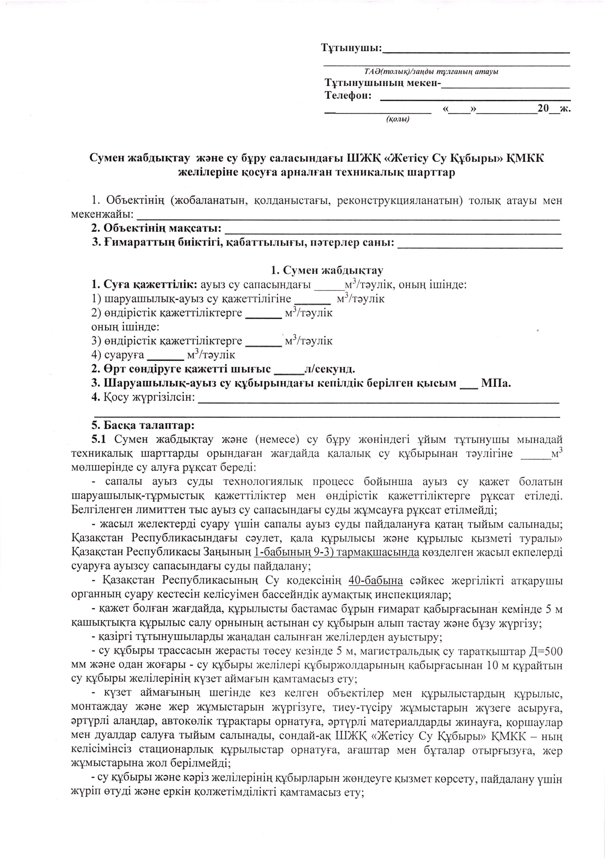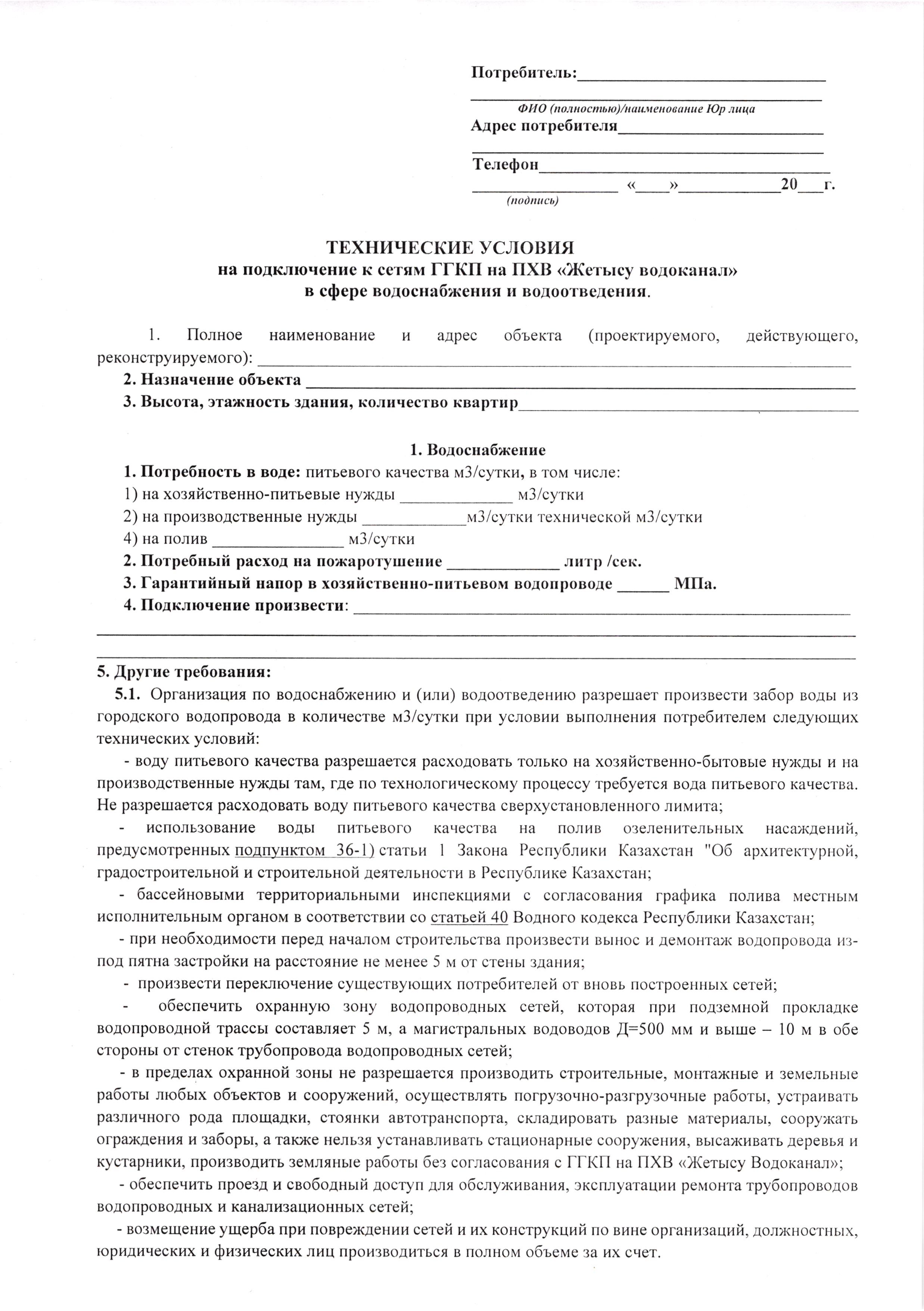 Заявка на тех.условия