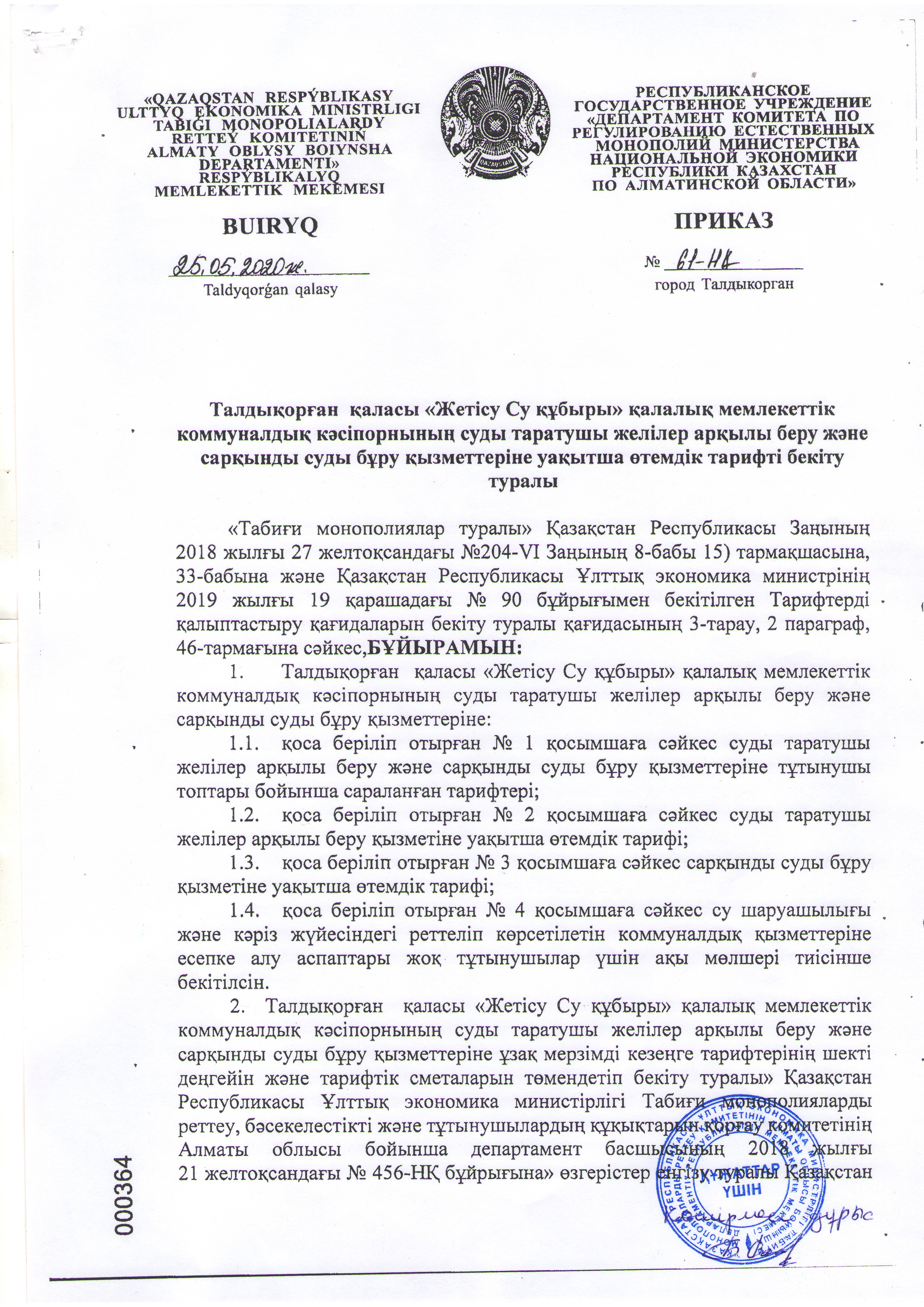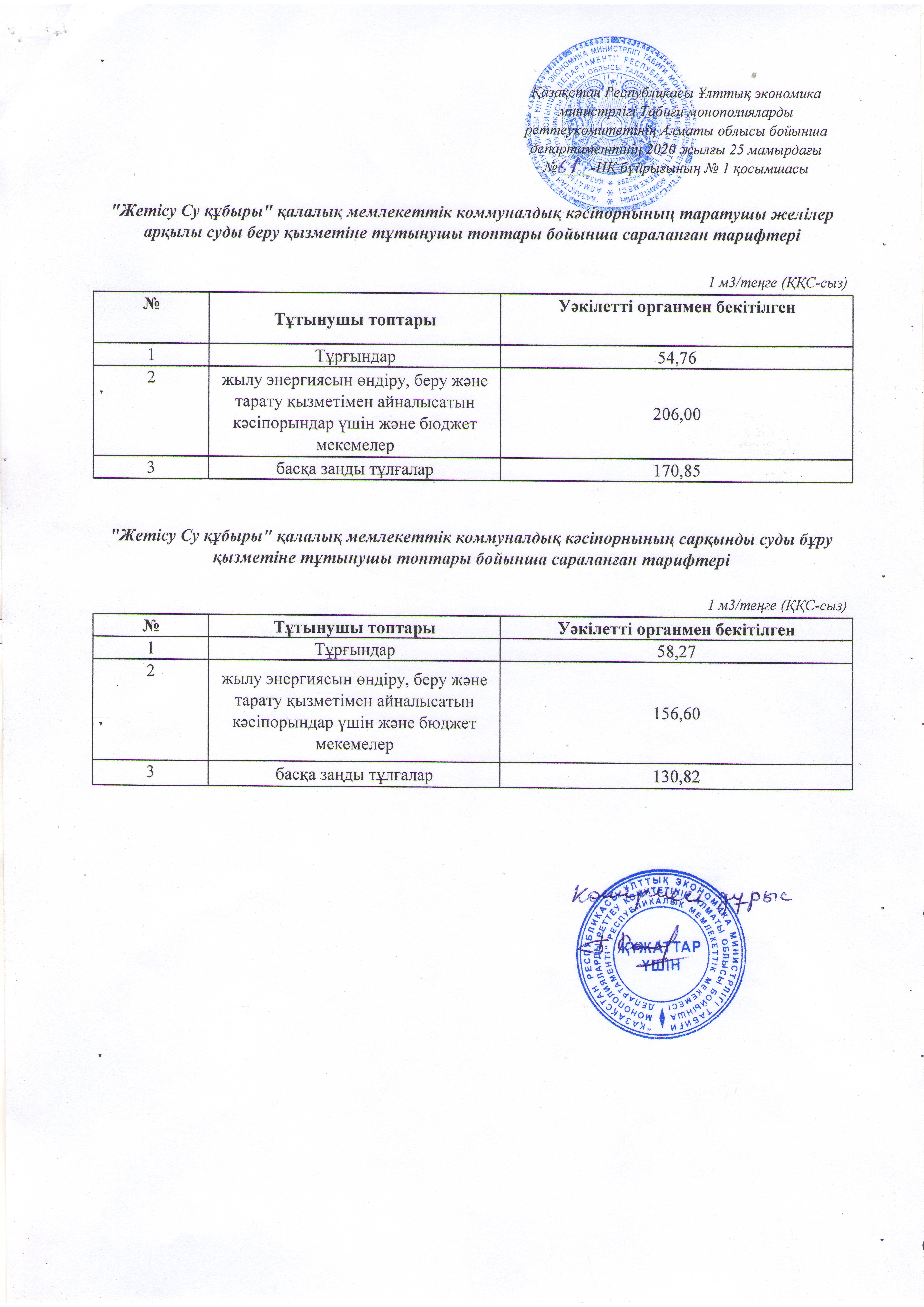 Техникалық шартты рәсімдеуіне online – өтінім 2018 жылдың 1 ақпанынан бастап Сіз өзіңіздің үйіңізді немесе нысаныңызды қалалық сумен жабдықтау және кәріз желілеріне қосу үшін техникалық шарттын рәсімдеуіне online – өтінім бере аласыз. Ол үшін, Сіз «Тех.шарт» тарауында таба алатын қажетті құжаттардың көшірмелерін және толтырылған өтініш бланкісін Бұл электронды пошта мекен-жайы спам-боттардан қорғалған. Көру үшін сіздің браузеріңізде JavaScript қосулы тұруы тиіс. e-mail – на жіберіледі. Сіздер жіберген құжаттар пакеті «Жетісу Су құбыры» ҚМКК түскеннен кейін өндірістік-техникалық бөлім мамандары қосылудың техникалық мүмкіндігіне тексеріс жүргізеді. Құжаттарды қарастыру 5 жұмыс күнін алады, содан кейін сіздің e-mail – ға хабарландыру келеді. «Жетісу Су құбыры» ҚМКК өндірістік-техникалық бөліміне құжаттардың түпнұсқасымен келуіңіз кажет. Жұмыс кестесі: Дүйсенбі ден жұмаға дейін 9-00 ден 17-00 дейін, түскі үзіліс 12-00 ден 13-00 дейін |