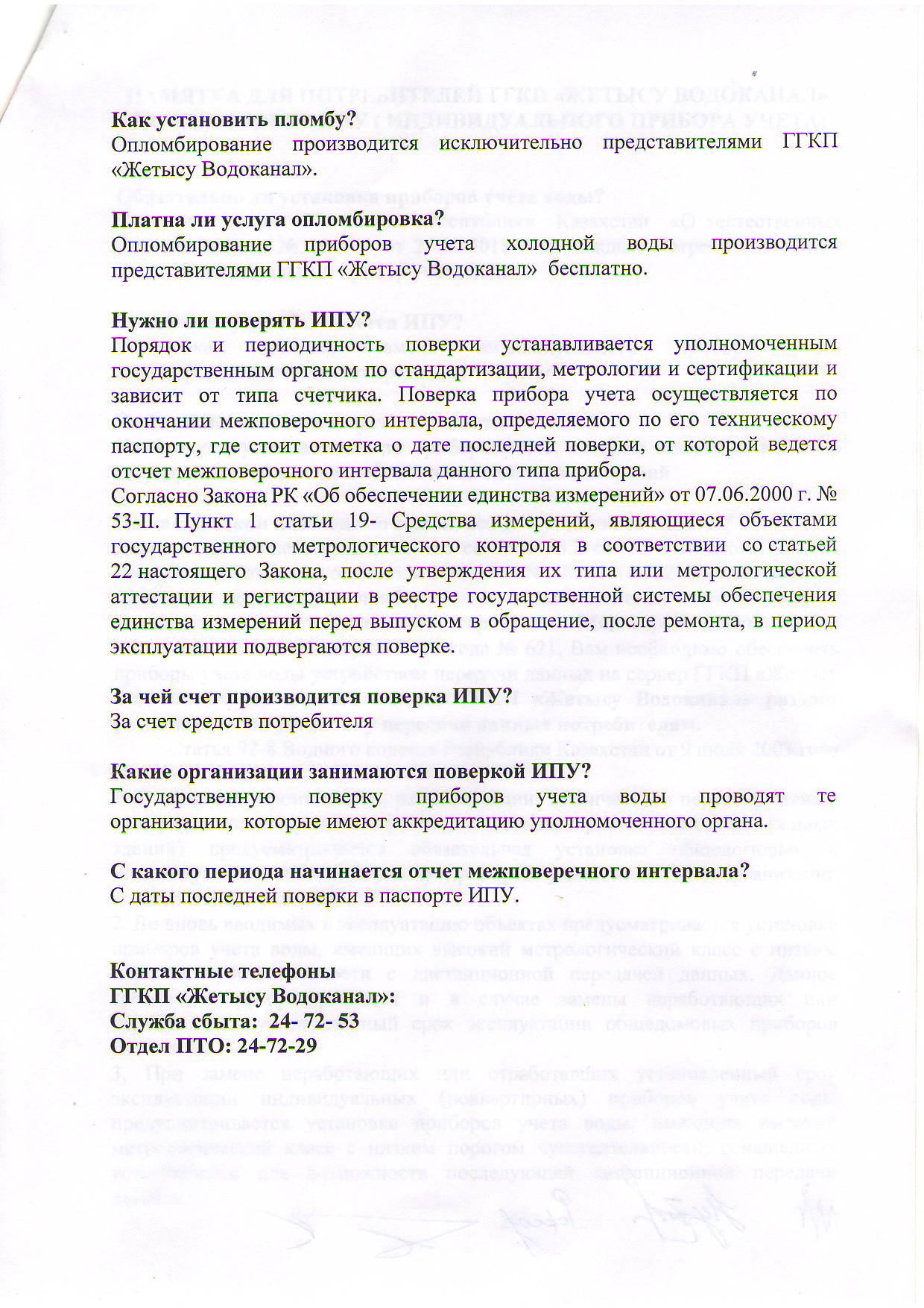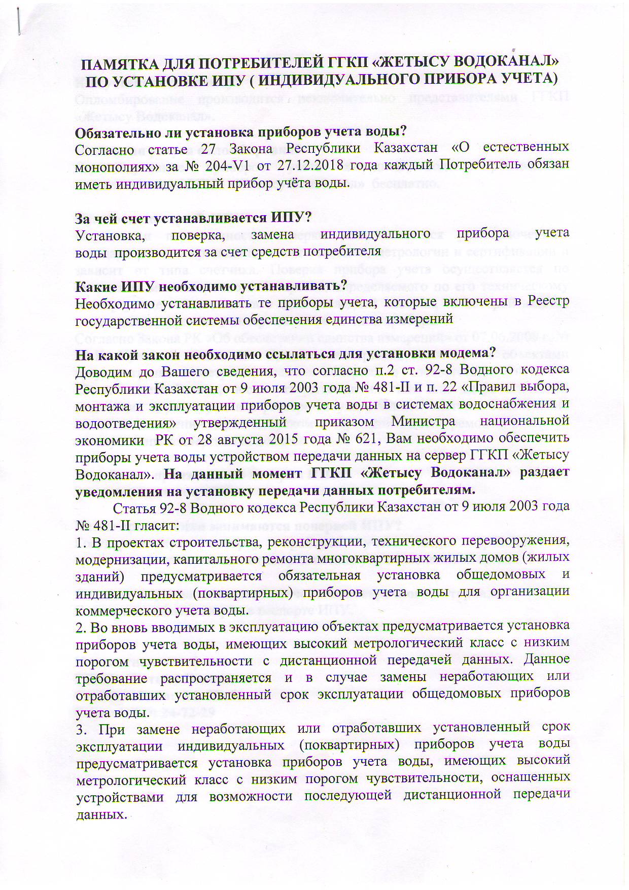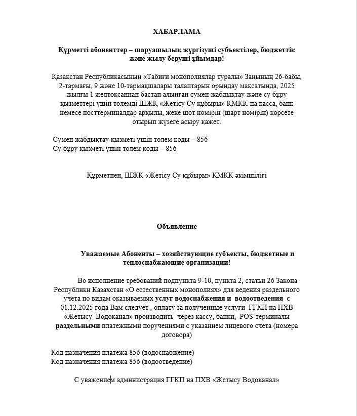ГГКП на ПХВ «Жетысу Водоканал» обращает внимание жителей города Талдыкорган на то, что участились случаи мошенничества,