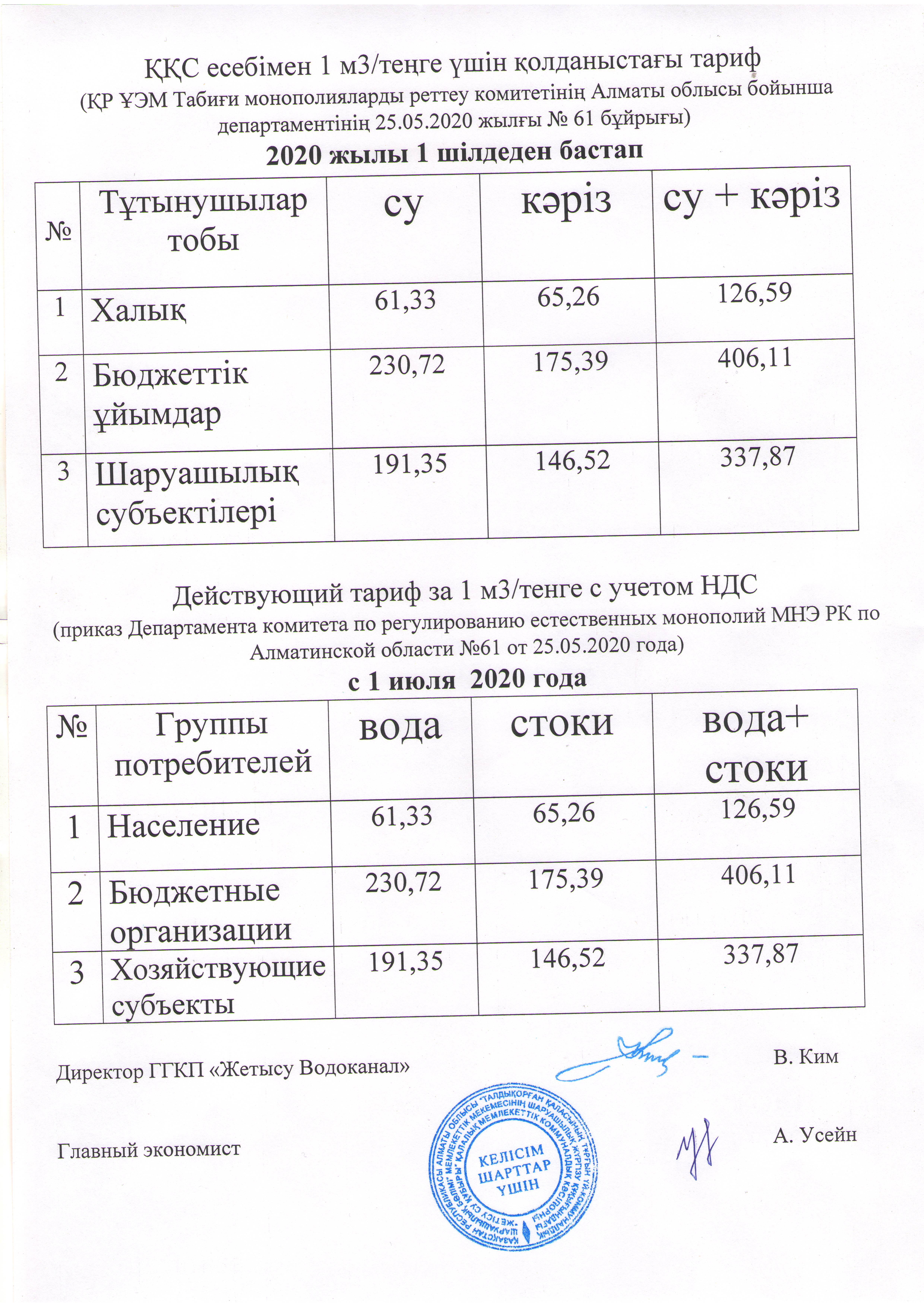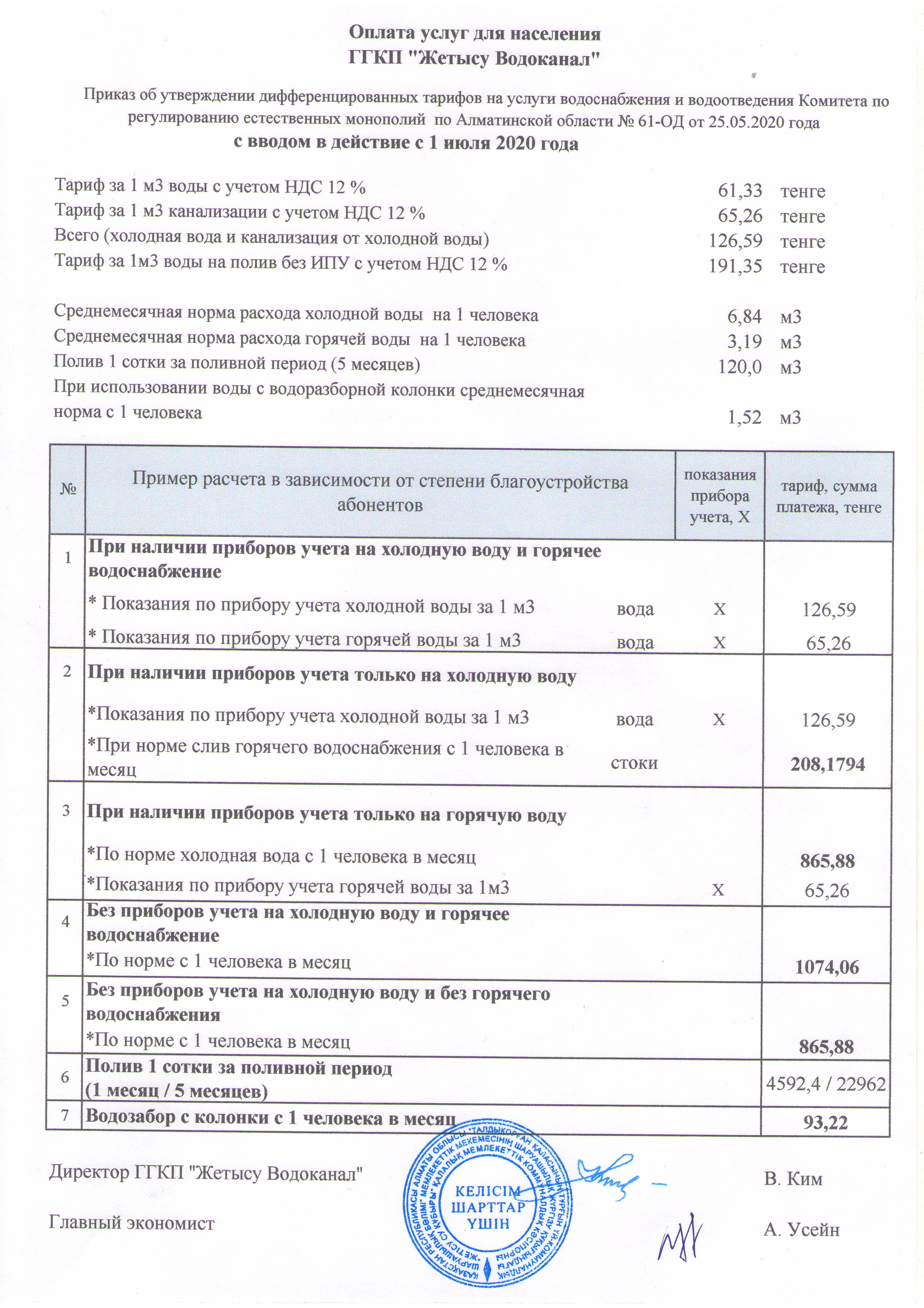 Тарифы на услуги водоснабжения и водоотведения с 01.07.2020 г.