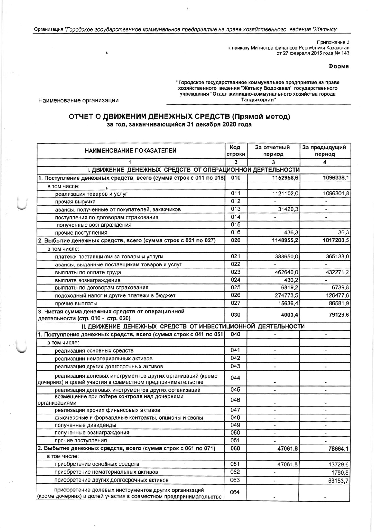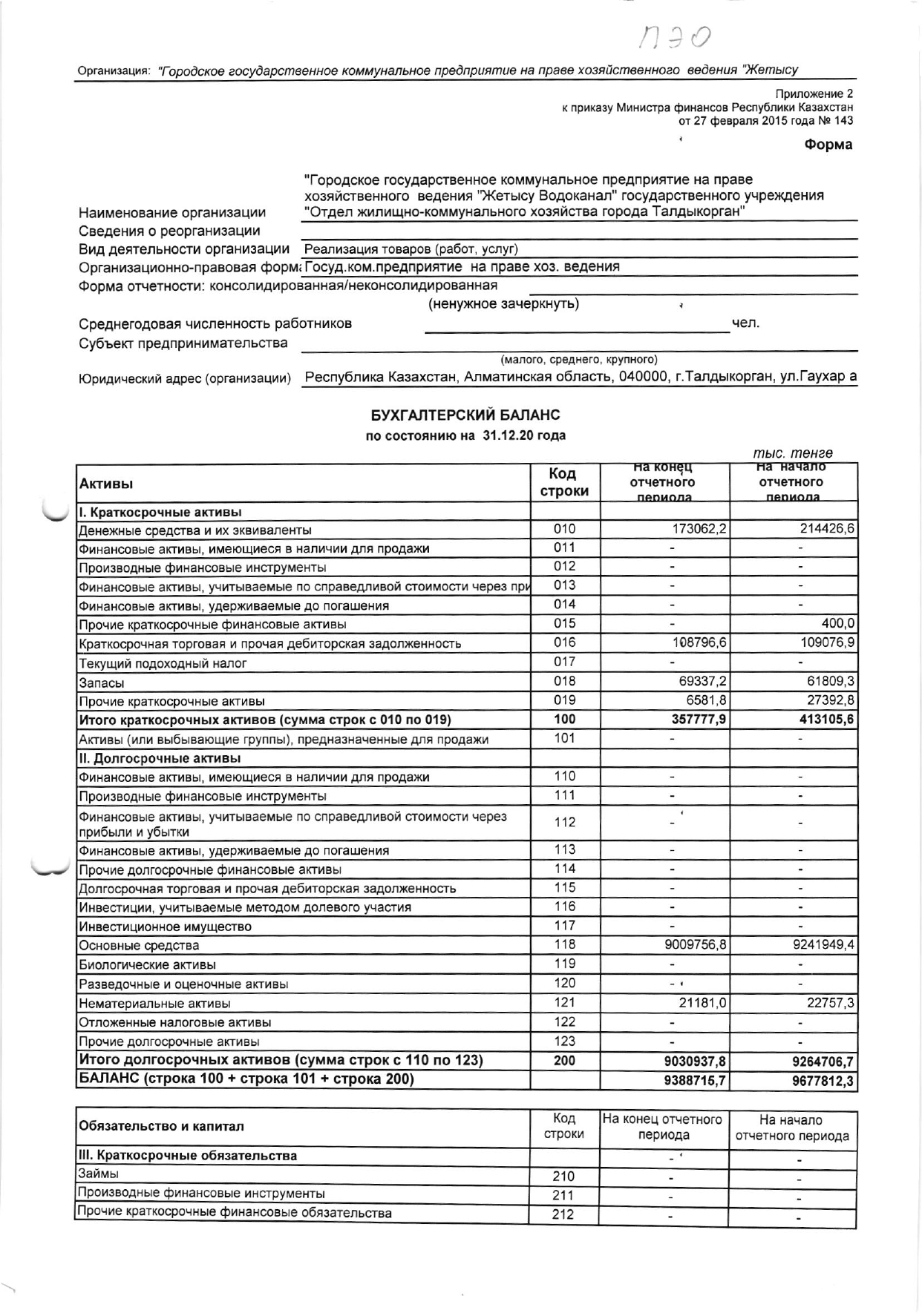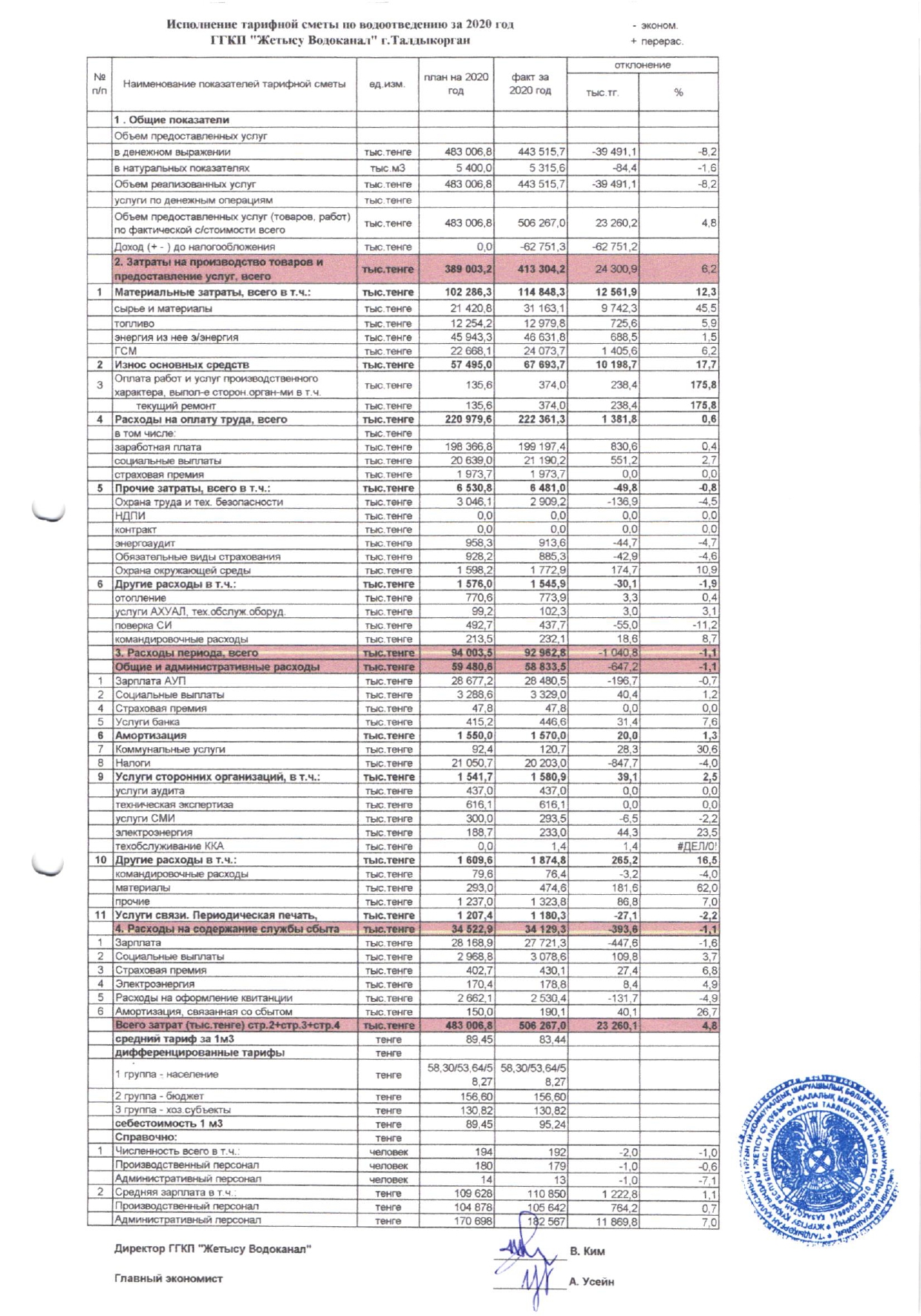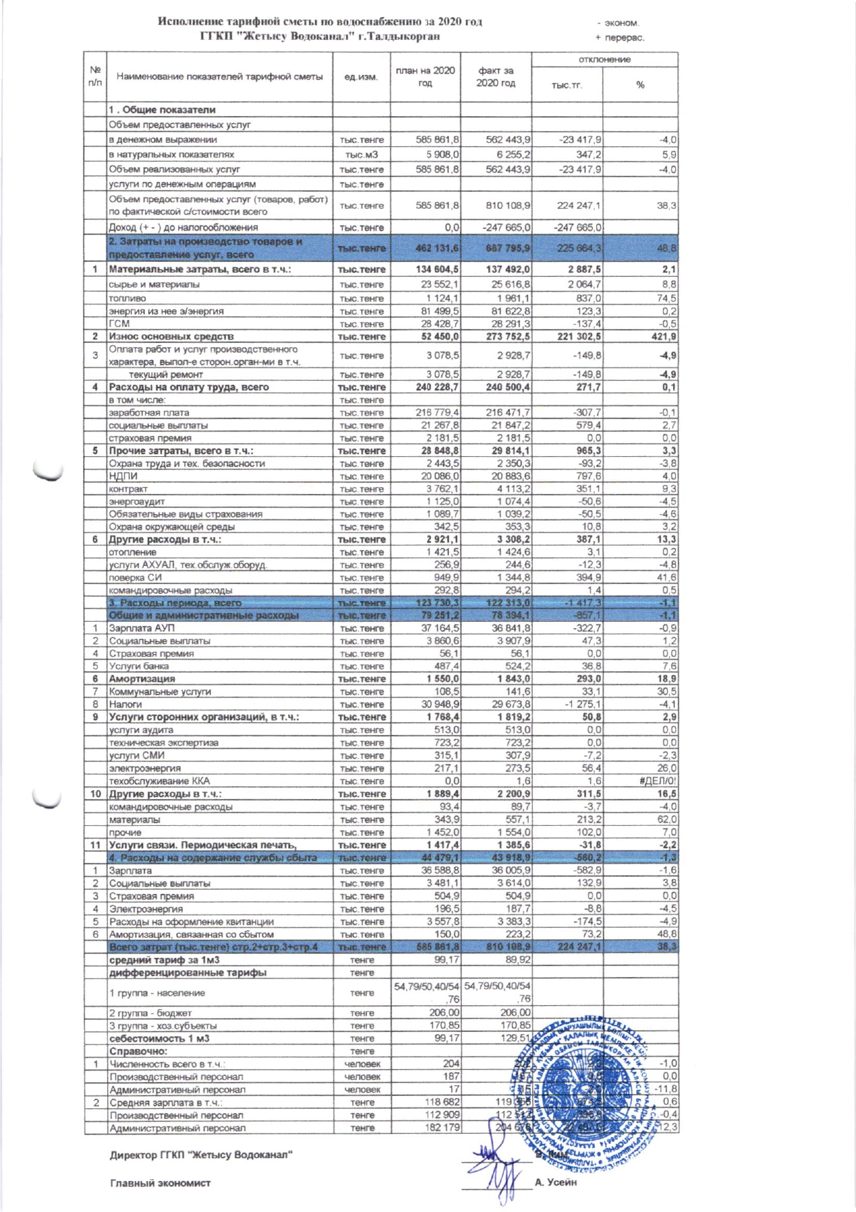 Отчет ГГКП "Жетысу Водоканал" за 2020 год