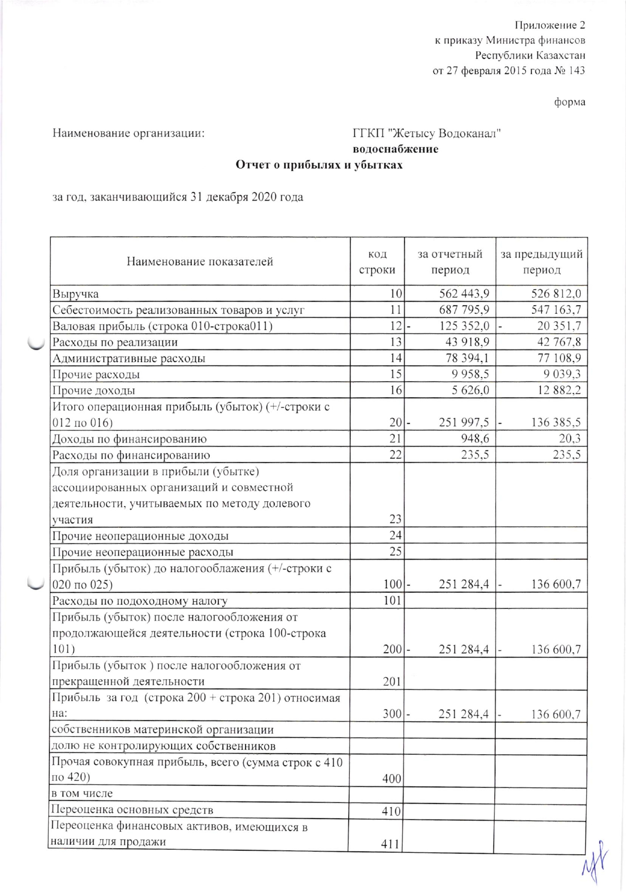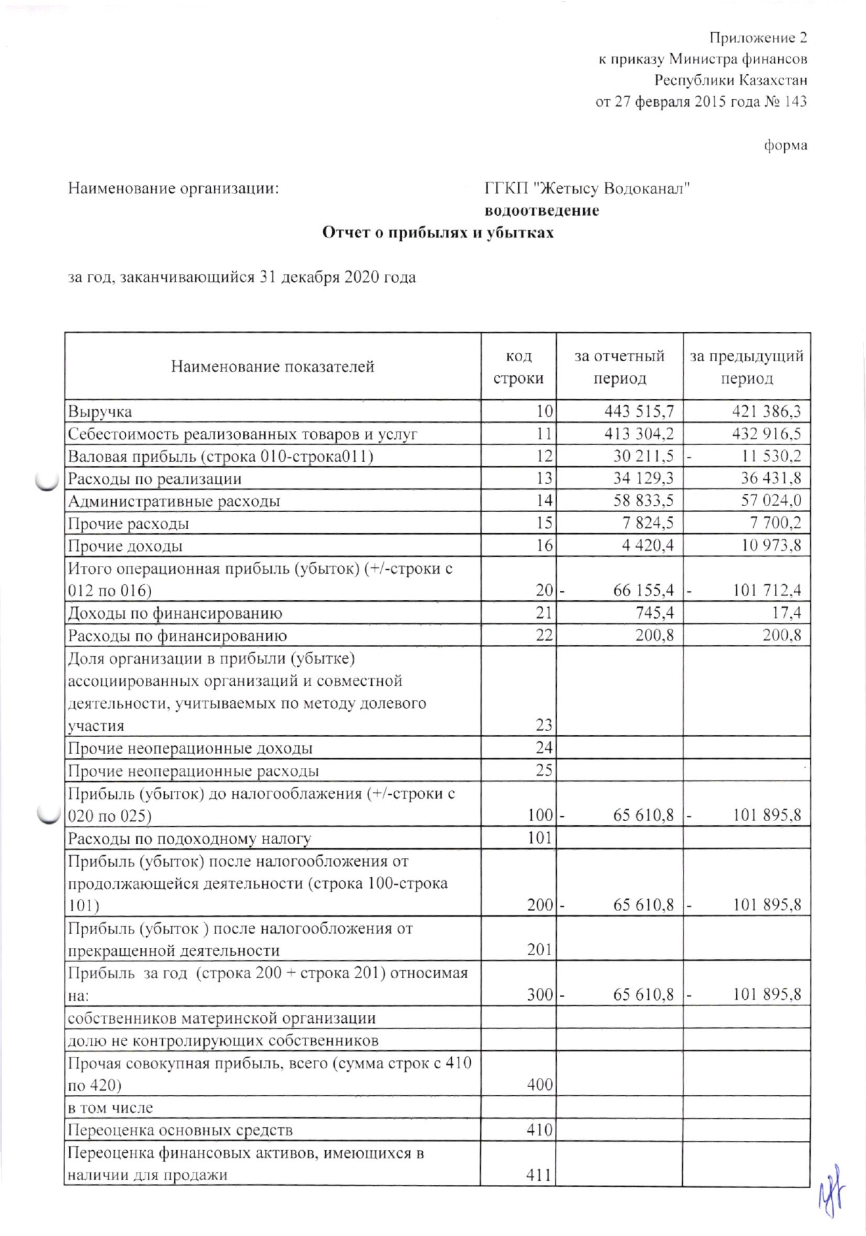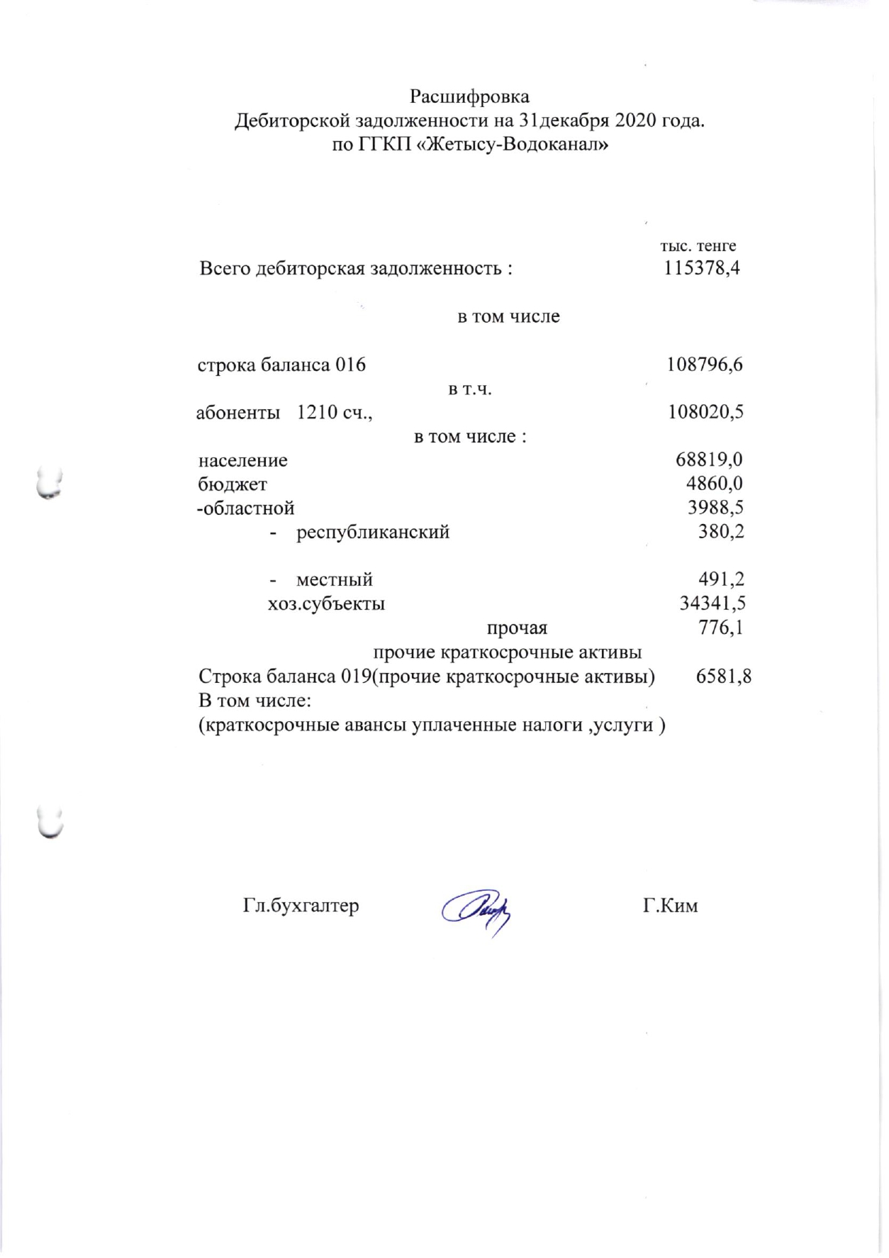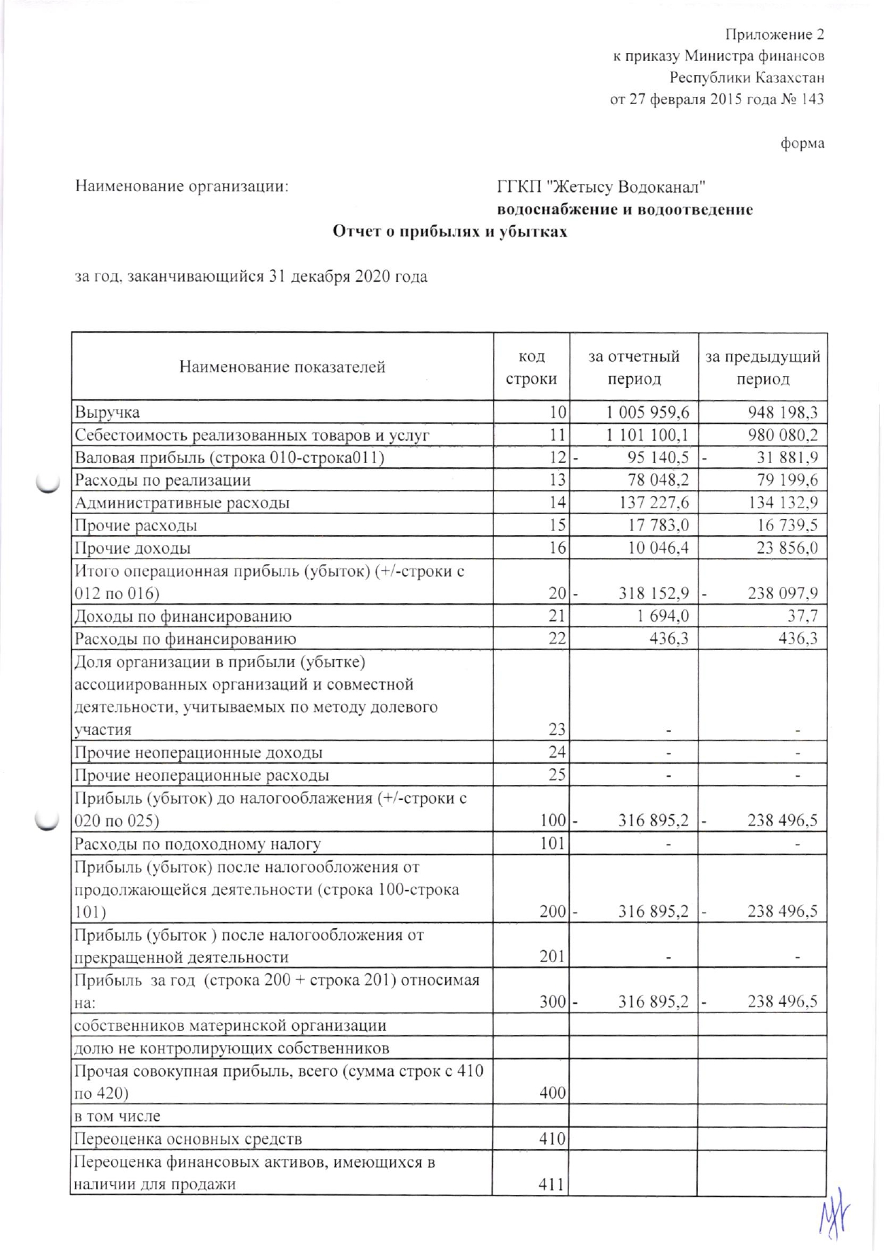 Отчет ГГКП "Жетысу Водоканал" за 2020 год