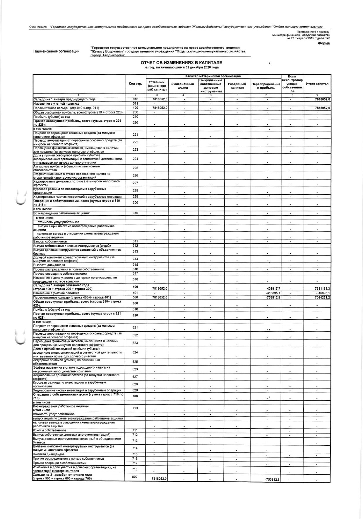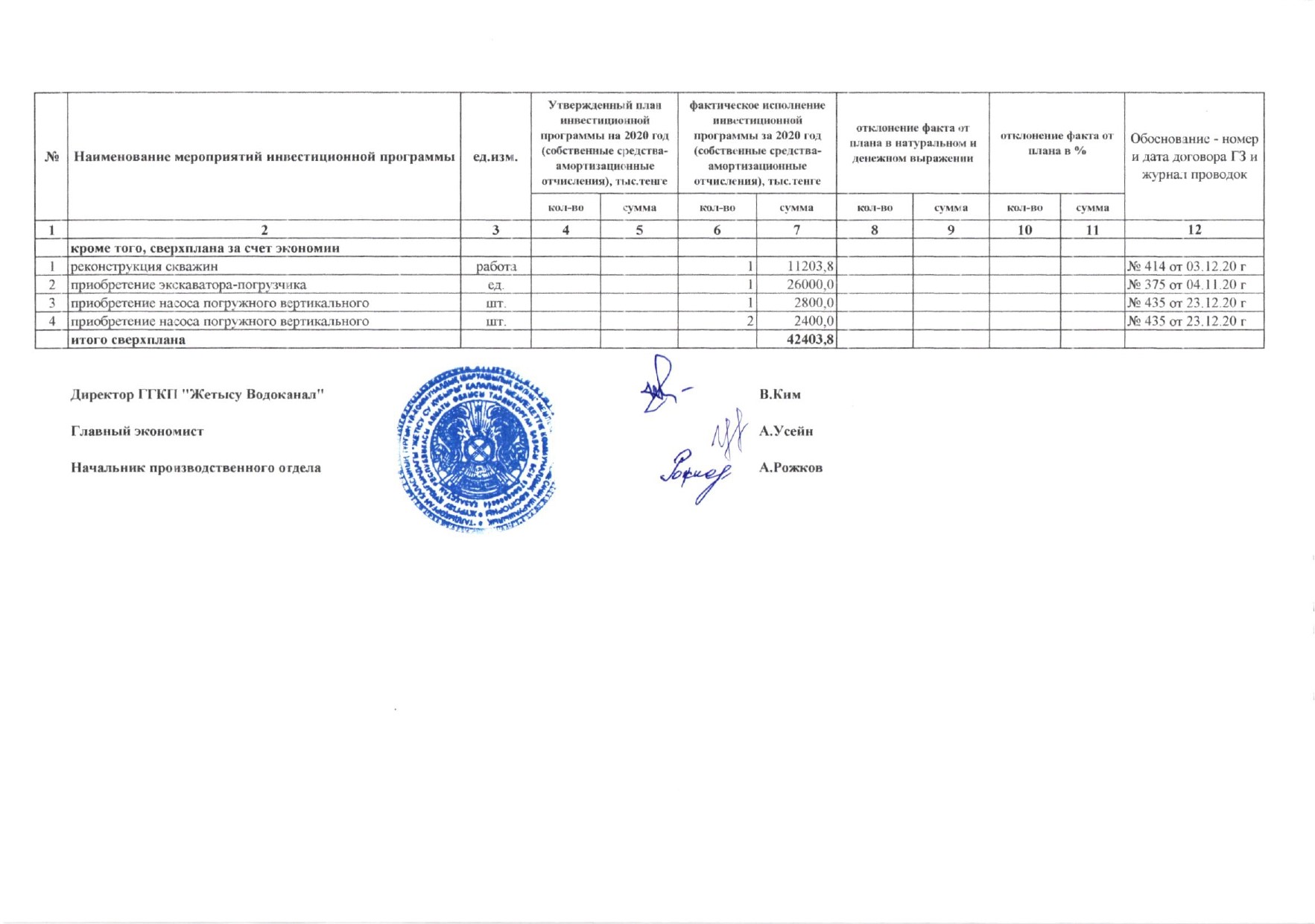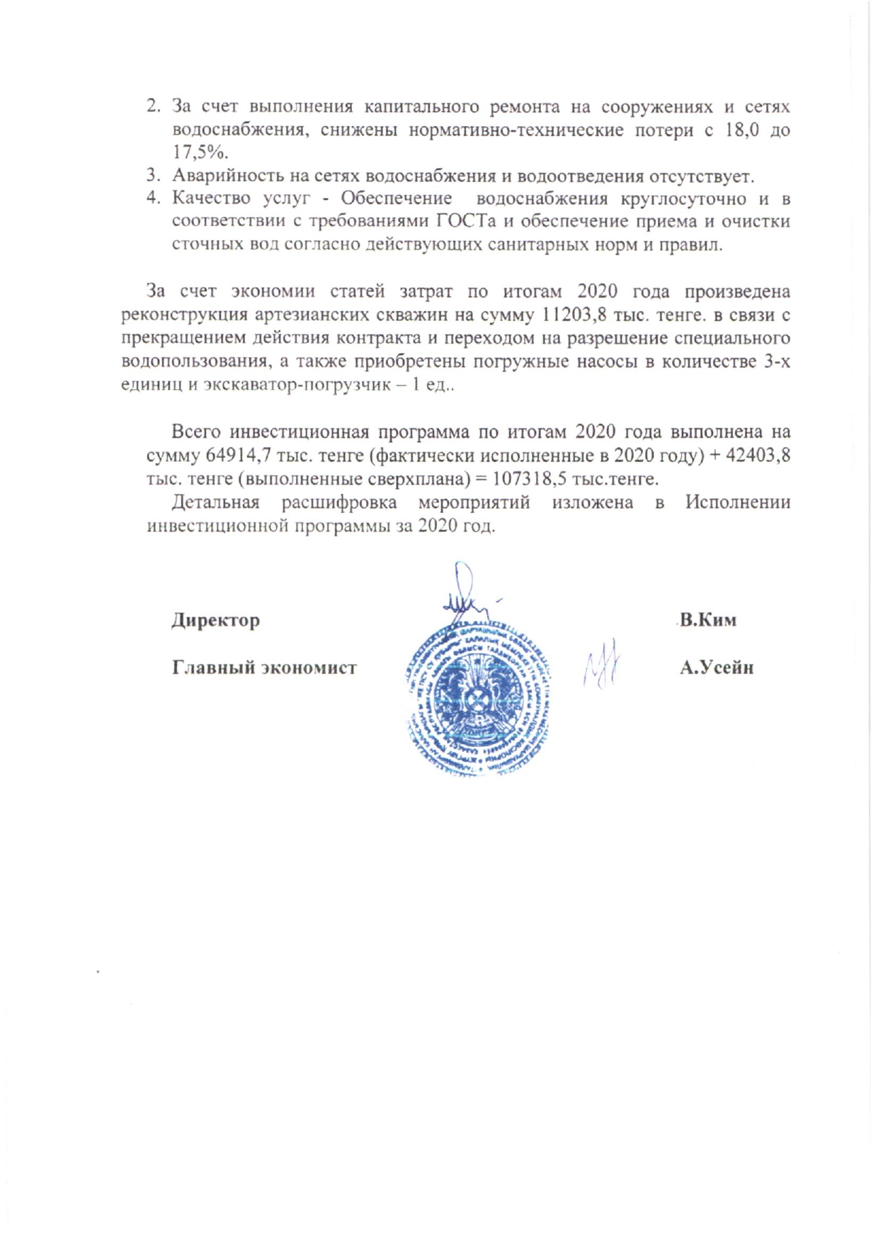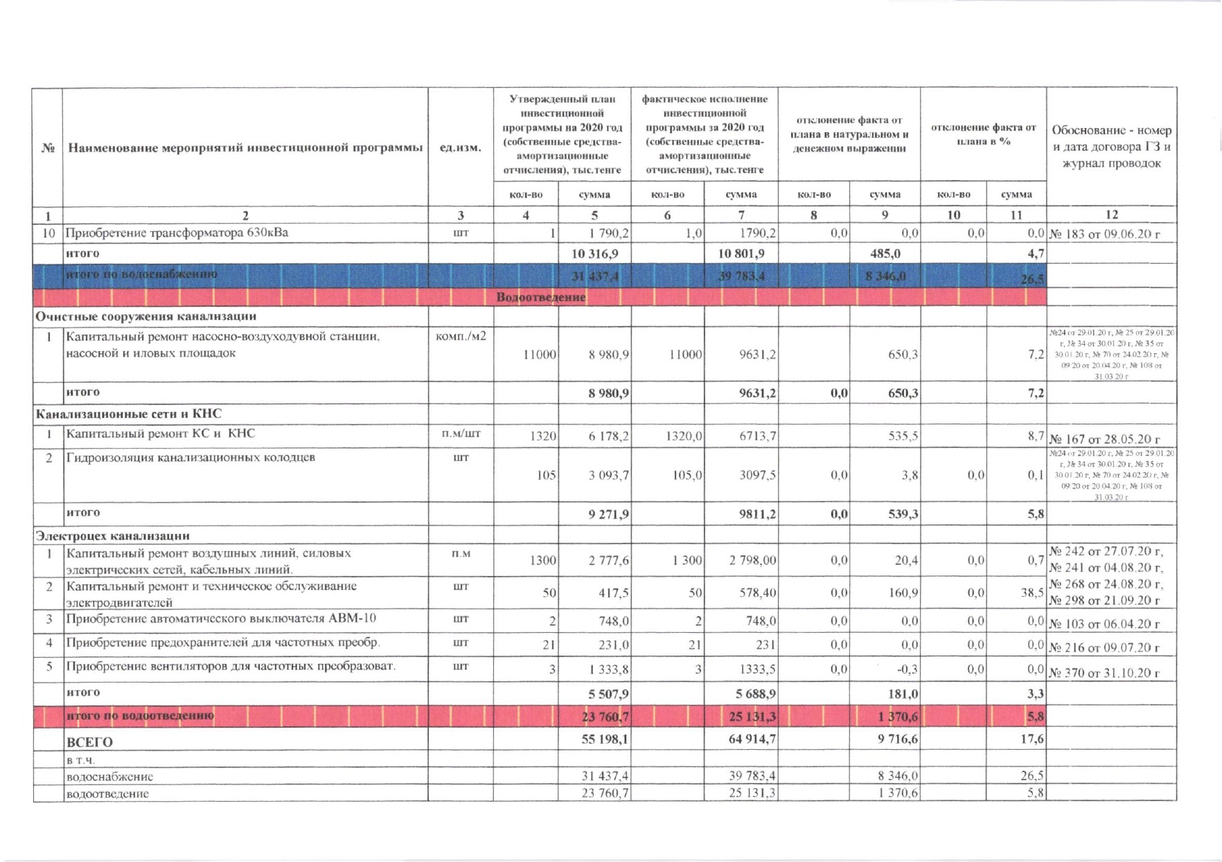 Отчет ГГКП "Жетысу Водоканал" за 2020 год