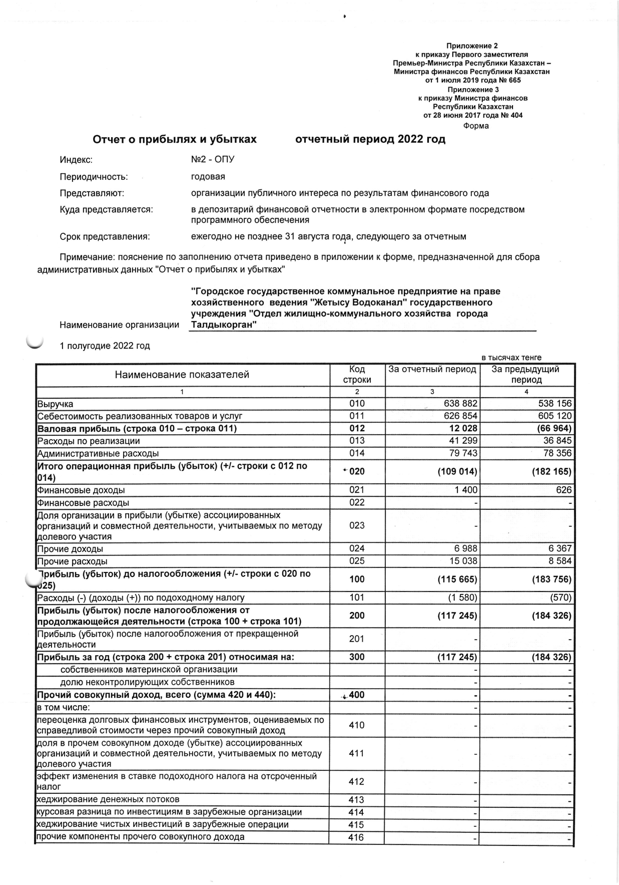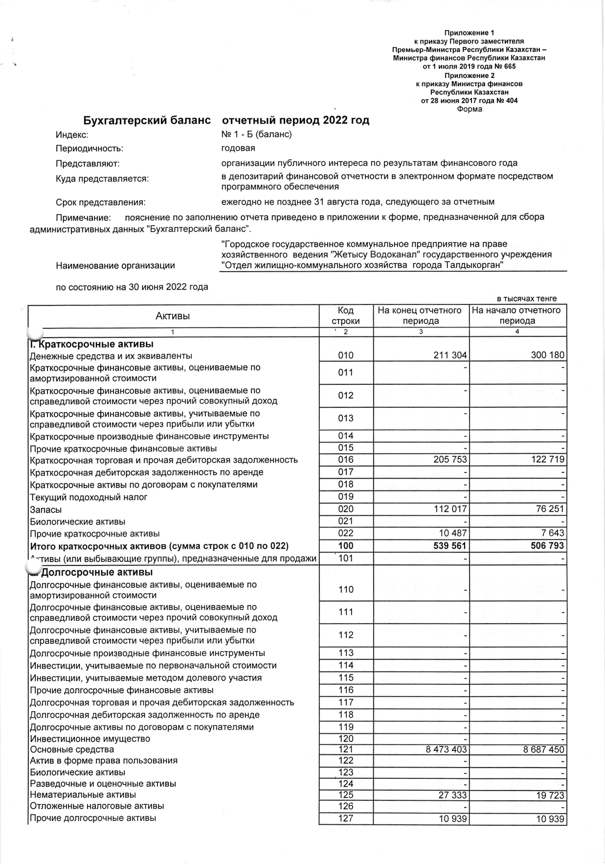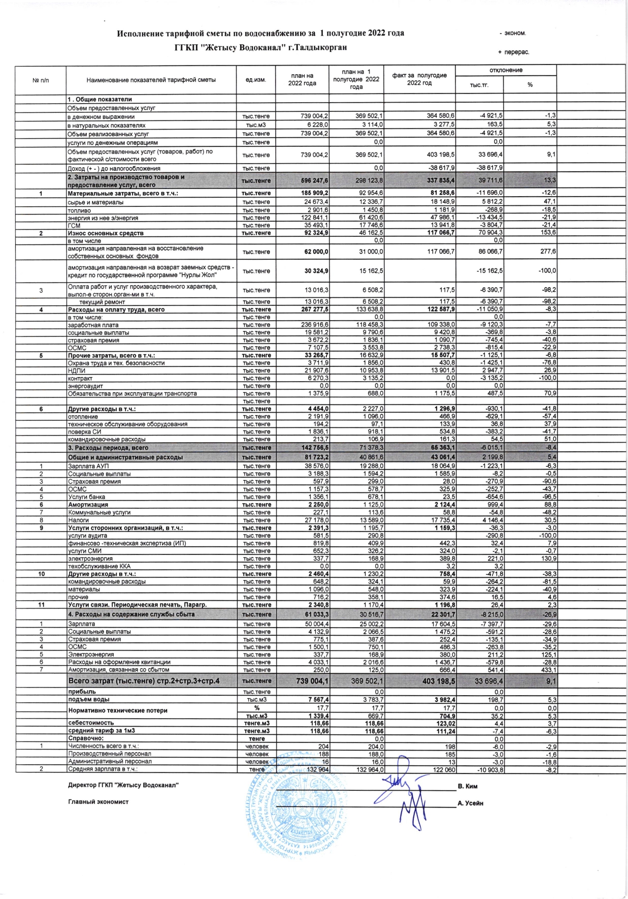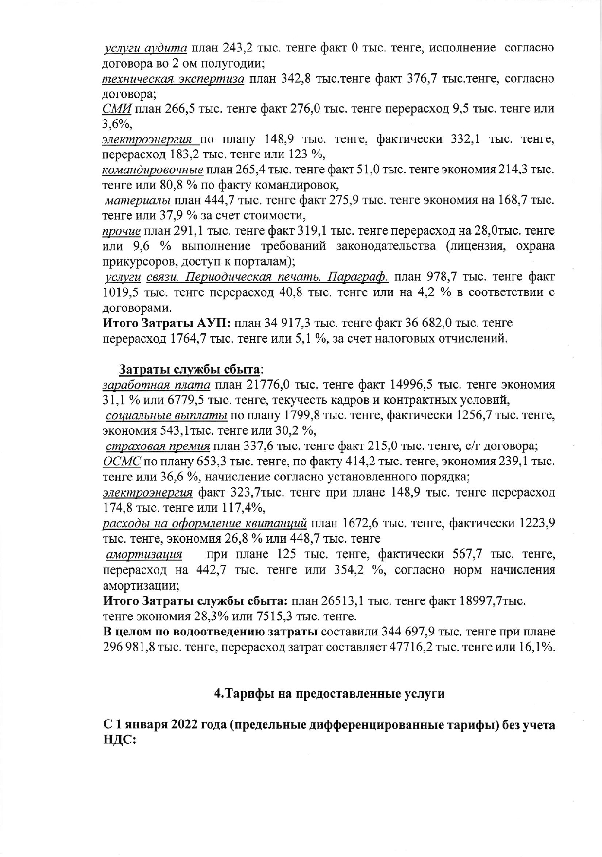 Отчет ГГКП "Жетысу Водоканал" за 1 полугодие 2022 год