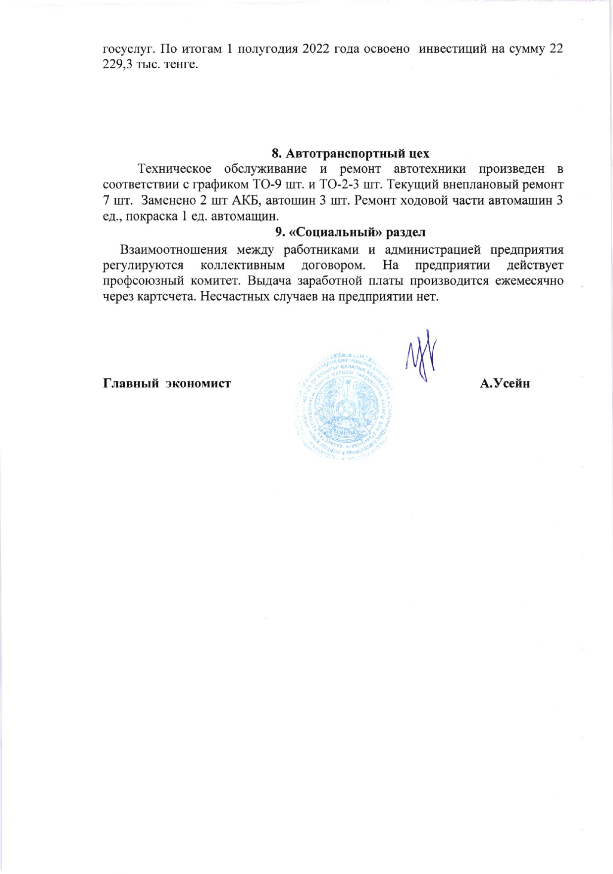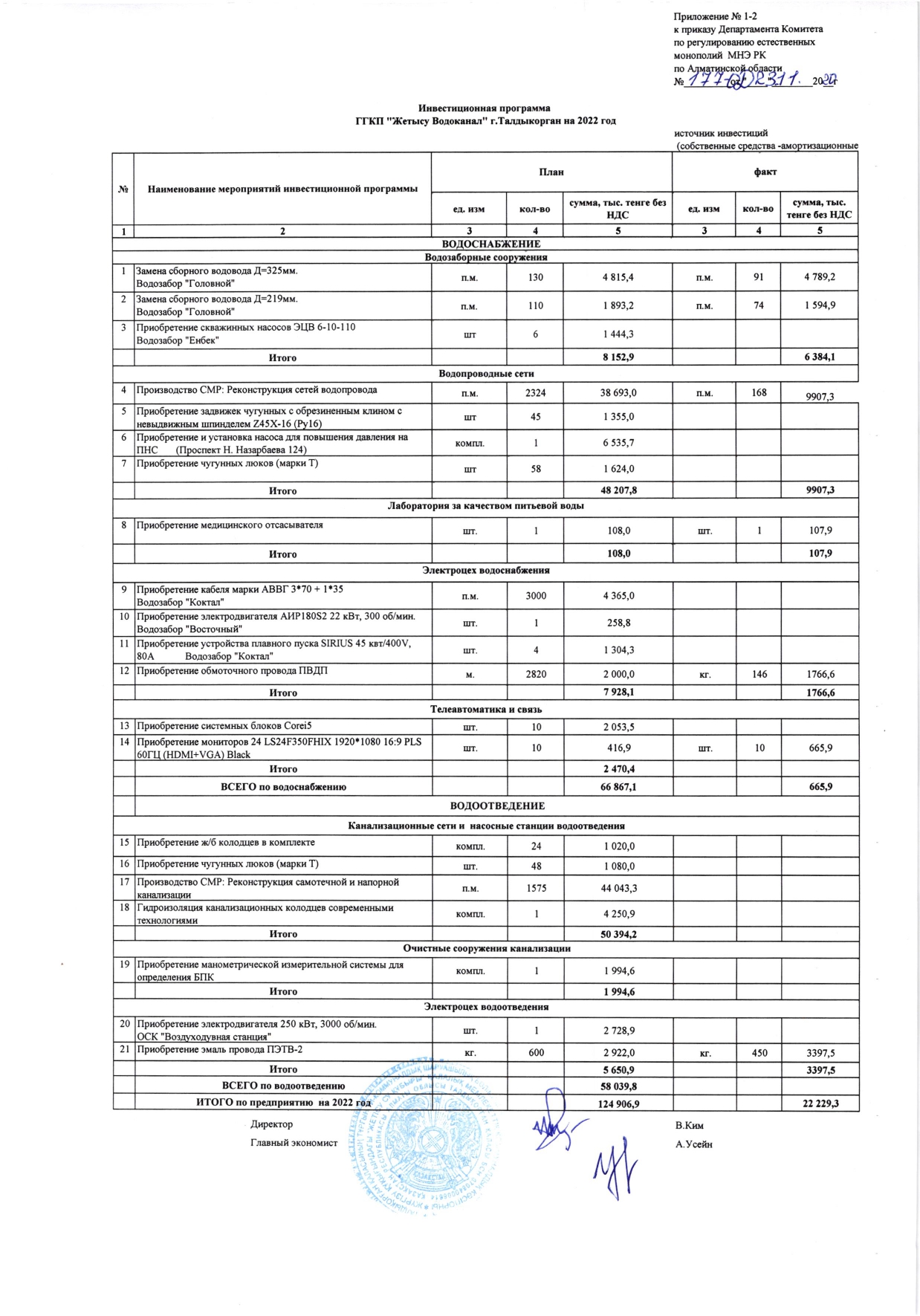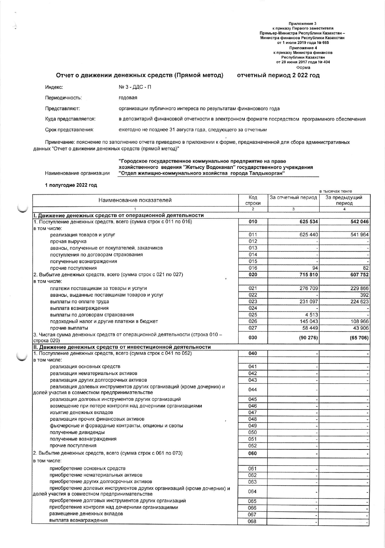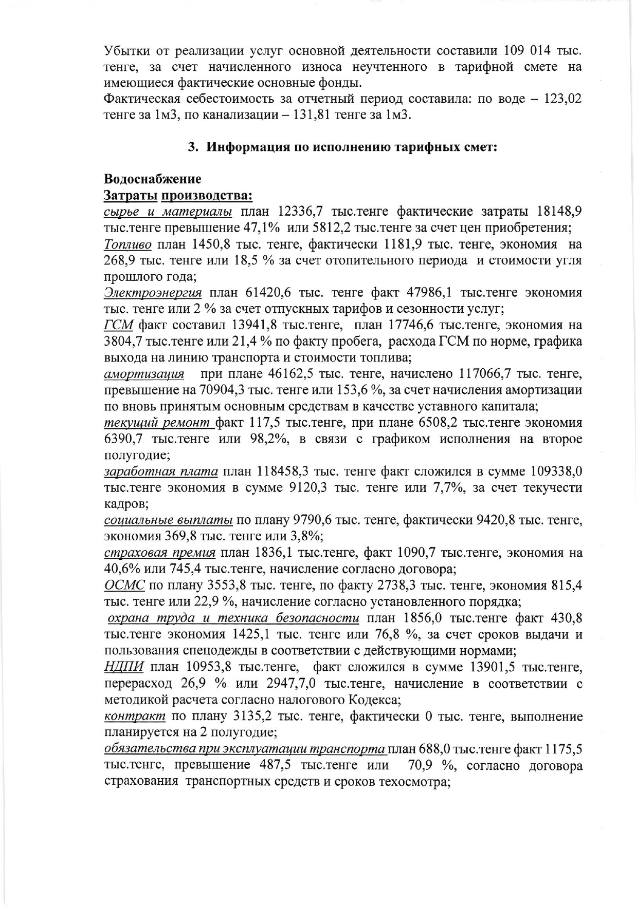 Отчет ГГКП "Жетысу Водоканал" за 1 полугодие 2022 год